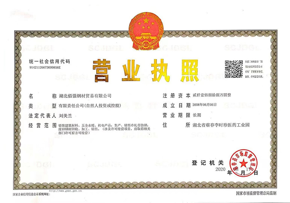 湖北佰強鋼材貿易有限公司始建于2008年6月,現落戶于蕲春縣李時珍醫藥工業園園區路7号,是在原“佰強鋼材市場”基礎上改制而成的民營獨資股份制企業。經過近十年來的跨越式發展,目前公司擁有總資産9000多萬元,其中固定資産投入6000多萬元,注冊資本2188萬元。現有員工105人,其中各類專業技術人員20人。 公司總占地面積21518㎡,其中生産建築面積有5368㎡,現有大型散裝貨場兩處、生産配套加工廠房三棟、原有的冷軋帶肋鋼筋生産線三條、盤螺校直切斷線兩條、箍筋生産線六條、拉絲切斷生産線四條、擁有5噸和10噸行車共16台、120噸大型電子磅一台。産品規格達80多種,年産能5萬噸,年産值2億元。